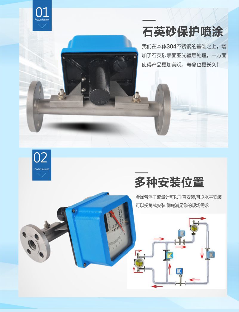 金屬管浮子流量計,是變面積式流量計的一種。在一根由下向上擴大的垂直錐管中,浮子可以在錐管內自由地上升和下降,圓形橫截面的浮子的重力是由液體動力承受的,隨著流量的變化,浮子在流速和浮力作用下上下運動,在某一位置浮子所受的力與浮子重力達到平衡。此時浮子與孔板(或錐管)間的流通環隙面積保持一定環隙面積與浮子的上升高度成正比,即浮子在測量管中上升的位置代表流量的大小,變化浮子的位置由內部通過磁耦合傳輸到外部的指示器,使指示器正確地指示此時的流量值。這就使得指示器殼體不和測量管直接接觸,因此,即使安裝限位開關或變送器,儀表可用于高溫,高壓工作條件下。